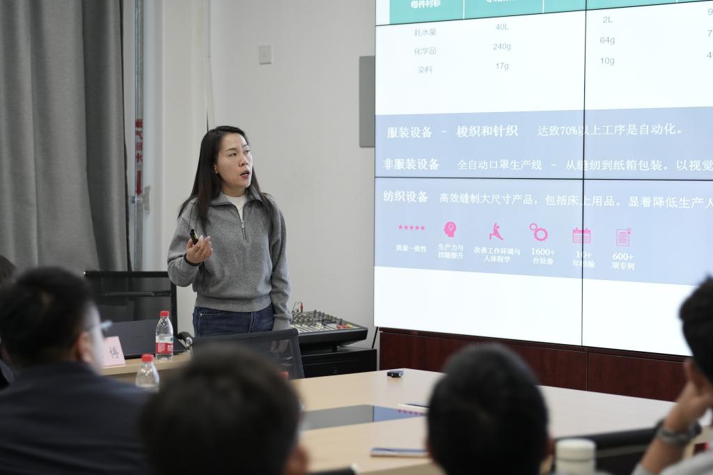 图 | 溢达创研村副总经理马安然为学生分享溢达集团科创转型发展之路
